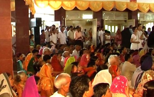 At the end of this special puja, Maharajji spoke to his disciples about the perils which humanity has to face in this Parivartan cycle (cycle of transformation in hearts and consciousness) which has begun. He insisted on the fact that spiritual change for the new era must come from each individual. ‘There is a saying from Maharajji [Sacha Baba Kulanandji, his Master] : “Change within yourselves.” Whatever work we do, one may listen or not, an inside voice tells us whether this work is good or not.’ He recommended that his disciples chant the name of God two hours every day, one hour in the morning and one in the evening.